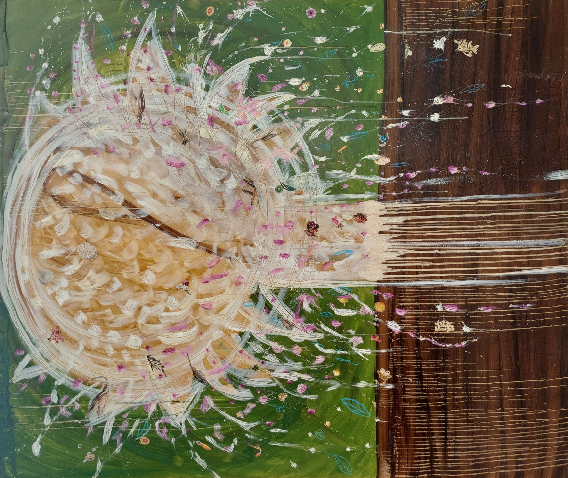 Salice piangente. Omaggio a Séraphine de Senlis, 2024, olio, pastello grasso e collage su tela,163 x 127 |
