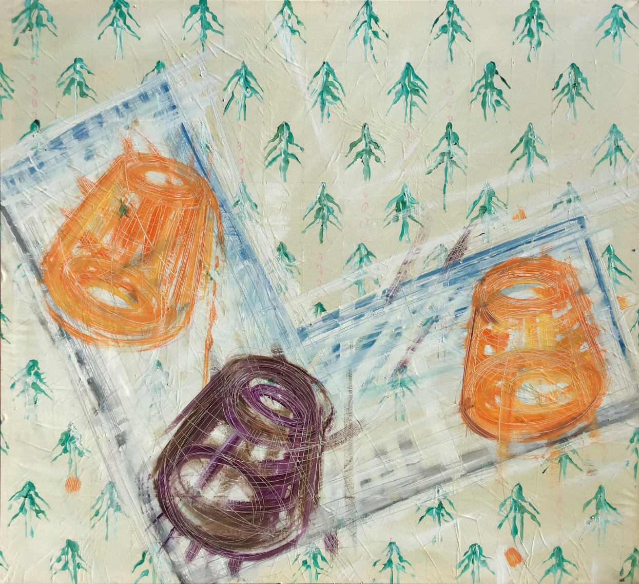 Albero della cuccagna II, 2023, olio e collage su tela, 144 x 124