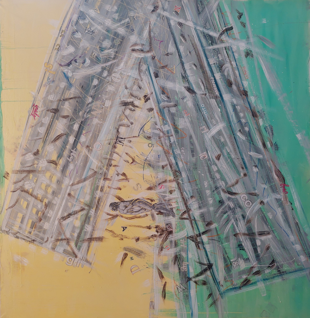 Testa da pazzo, 2025, olio e collage su tela, cm 162 x 142 |