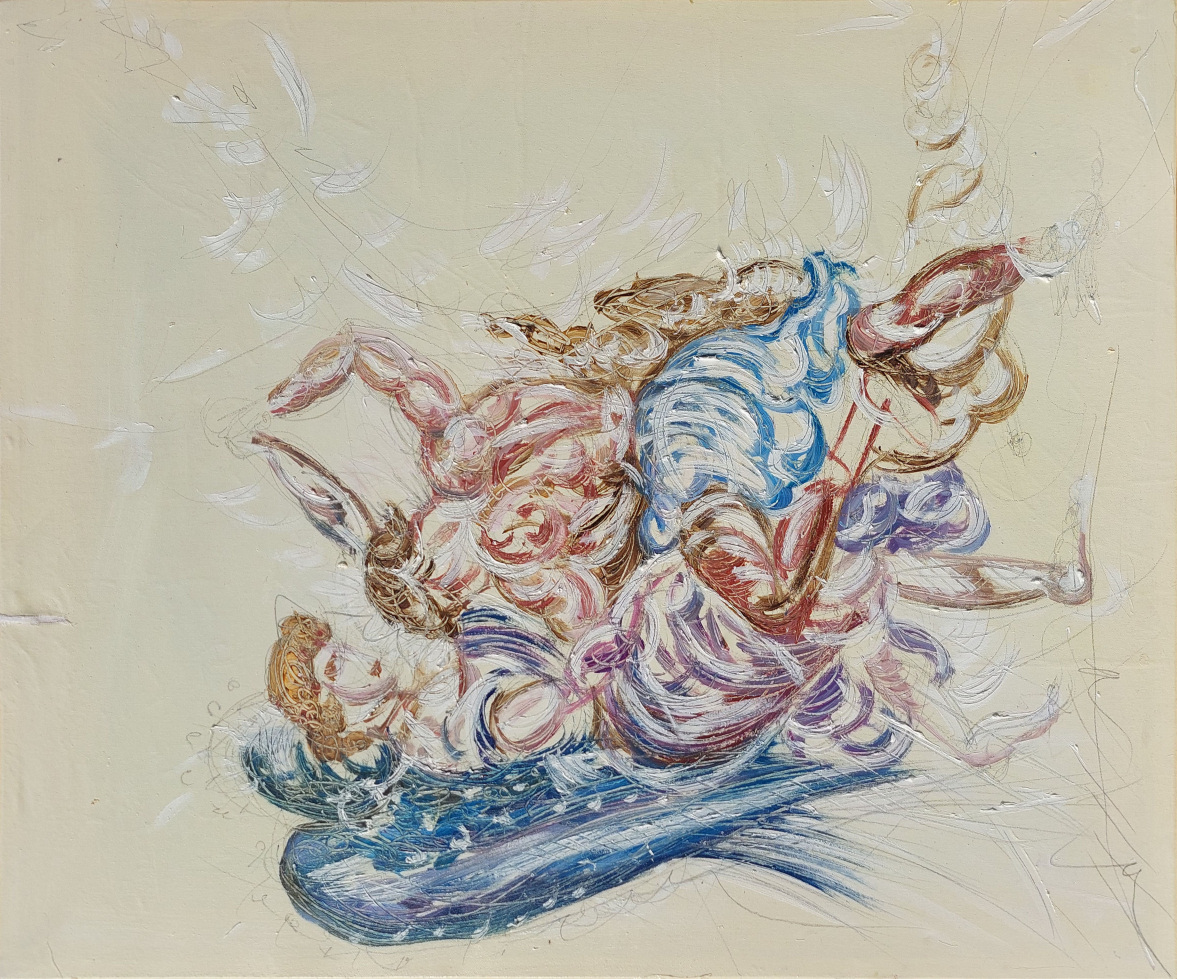 Lotta tra Giobbe e l'Angelo, 2025, grafite e olio su tela, cm 59 x 49 |