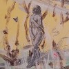 Nobile levriero costretto a rimettere l'anima a Dio, 2023, acrilico, matite colorate, grafite e collage su carta, cm 24 x 32 |